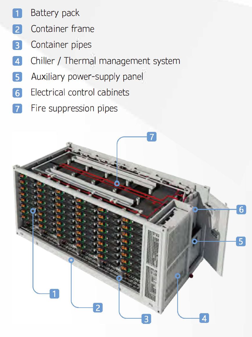 - Капацитет по једном контејнеру 3,42 MWh, 4,56 MWh, 5 MWh