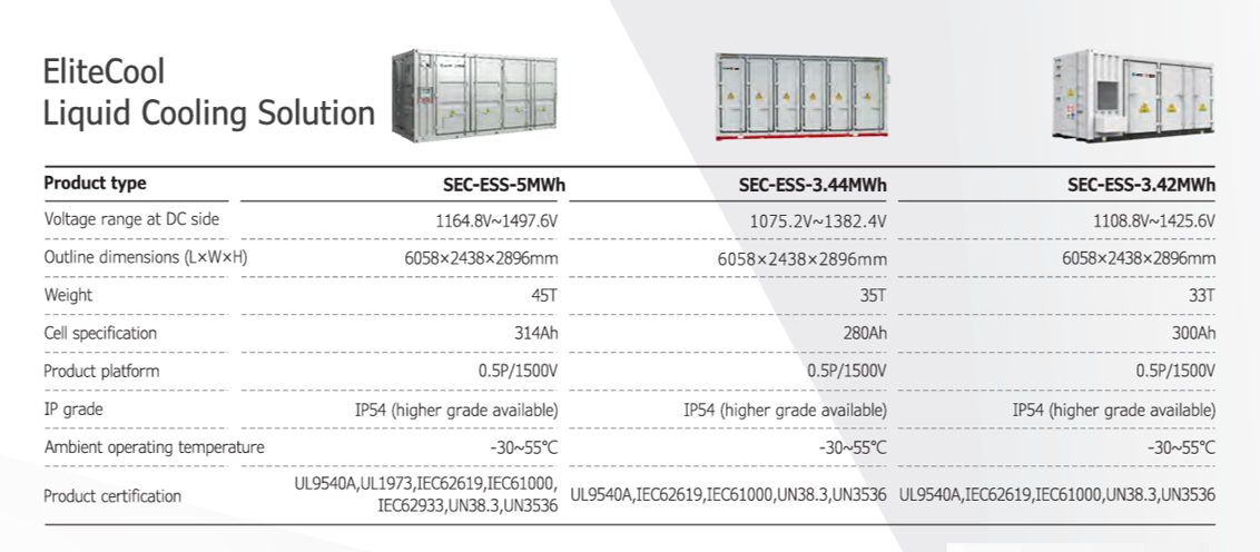 Производи серије Elite Cool са течним хлађењем Smart ESS покривају напонске платформе 1000 V и 1500 V, а одликују се високом безбедношћу, високим излазом, прецизним управљањем и високом интеграцијом.