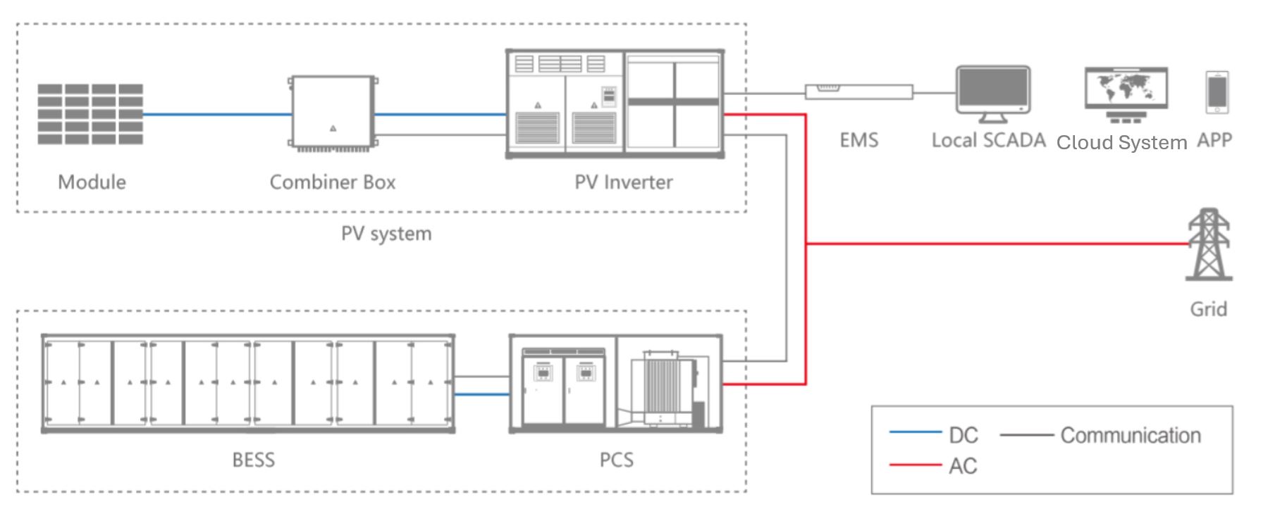 Кључне компоненте BESS (Battery Energy Storage System) укључују батеријске модуле или ћелије које складиште електричну енергију, инверторе који претварају једносмерну струју (DC) из батерија у наизменичну струју (AC) за употребу у мрежи, систем управљања батеријом (BMS) који прати и управља здрављем батерије, системе термалног управљања за регулацију температуре и обезбеђивање безбедности, системе конверзије снаге за ефикасан пренос енергије и управљачке системе који координишу рад, безбедносне механизме и комуникационе интерфејсе ради беспрекорне интеграције са мрежом.