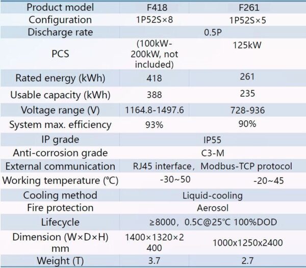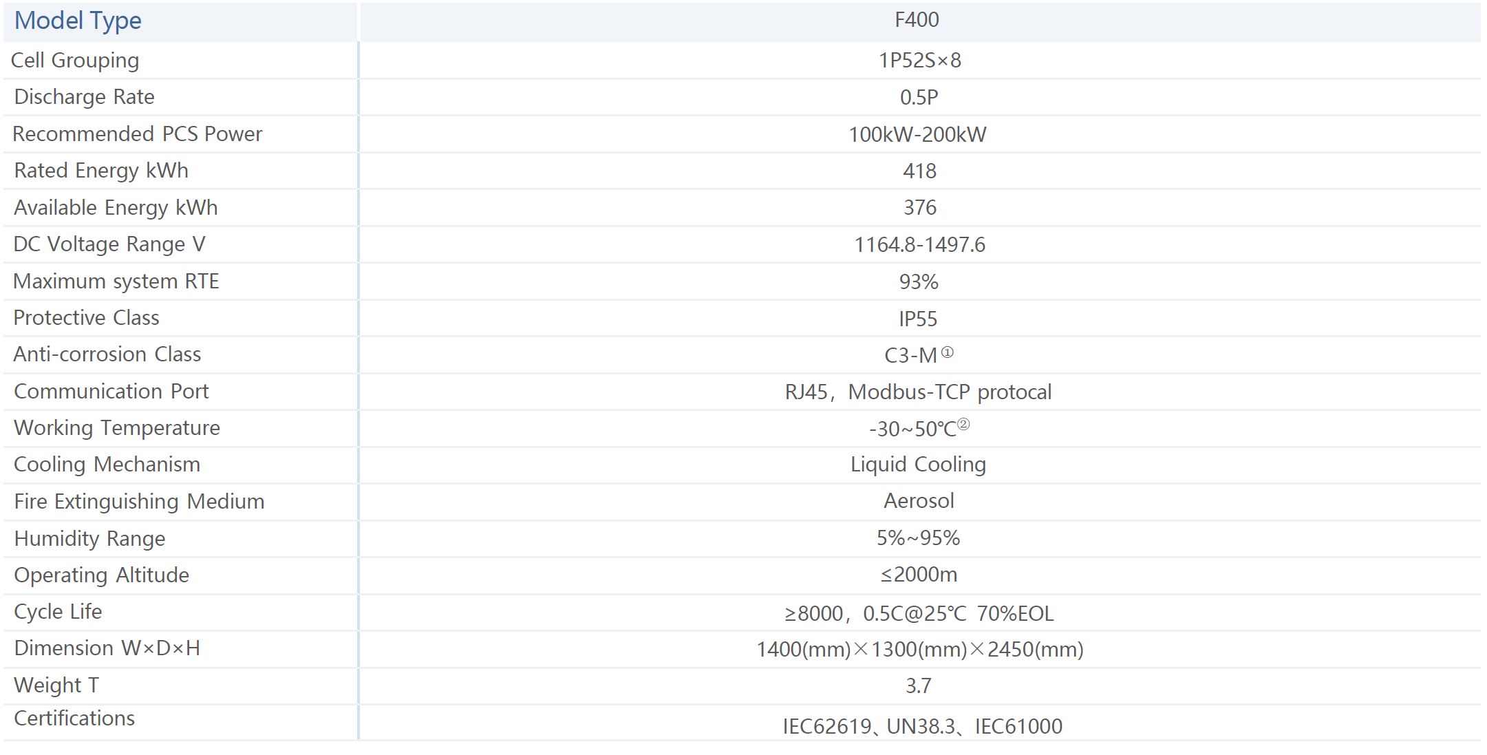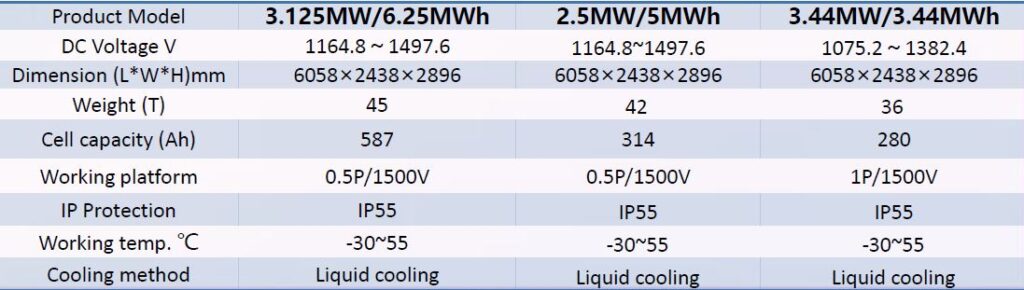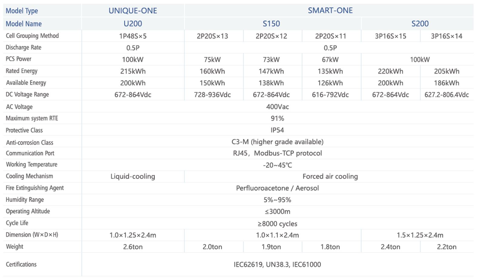 - Капацитет по једном контејнеру 3,42 MWh, 4,56 MWh, 5 MWh